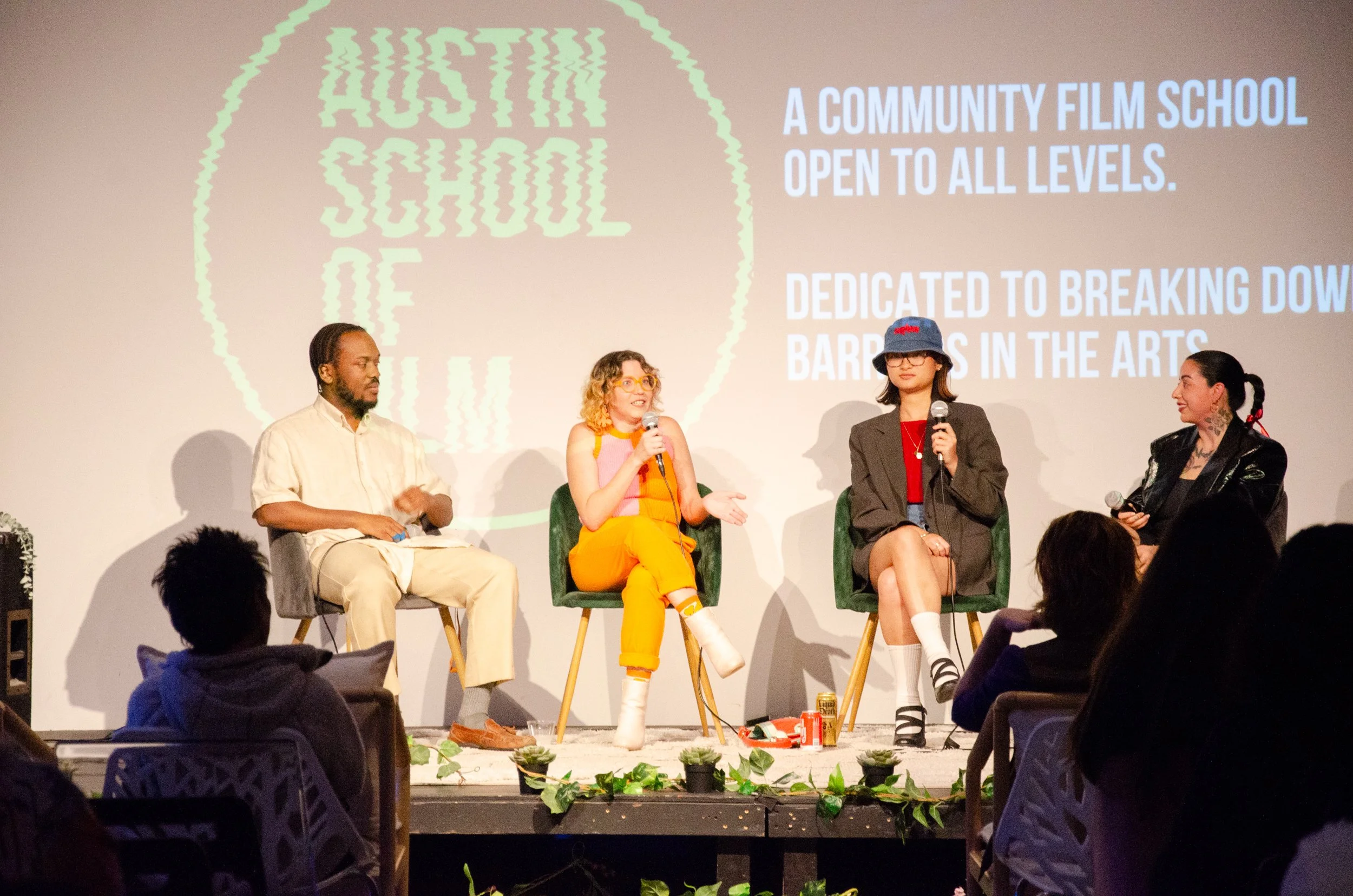 The event commenced with a captivating artist talk, featuring the resident artists of Artists in Motion, Joshua Oliver, Michelle Bluhm, and Evelyn Rude, who shared their creative journeys and the challenges they face in an environment of rising costs. Following the panel, ACS presented 15 exciting all-local films created entirely by it’s Studio Access members. This showcase, provided a significant opportunity for these local filmmakers to present their works during a period of heightened excitement surrounding film and creative media in Austin.