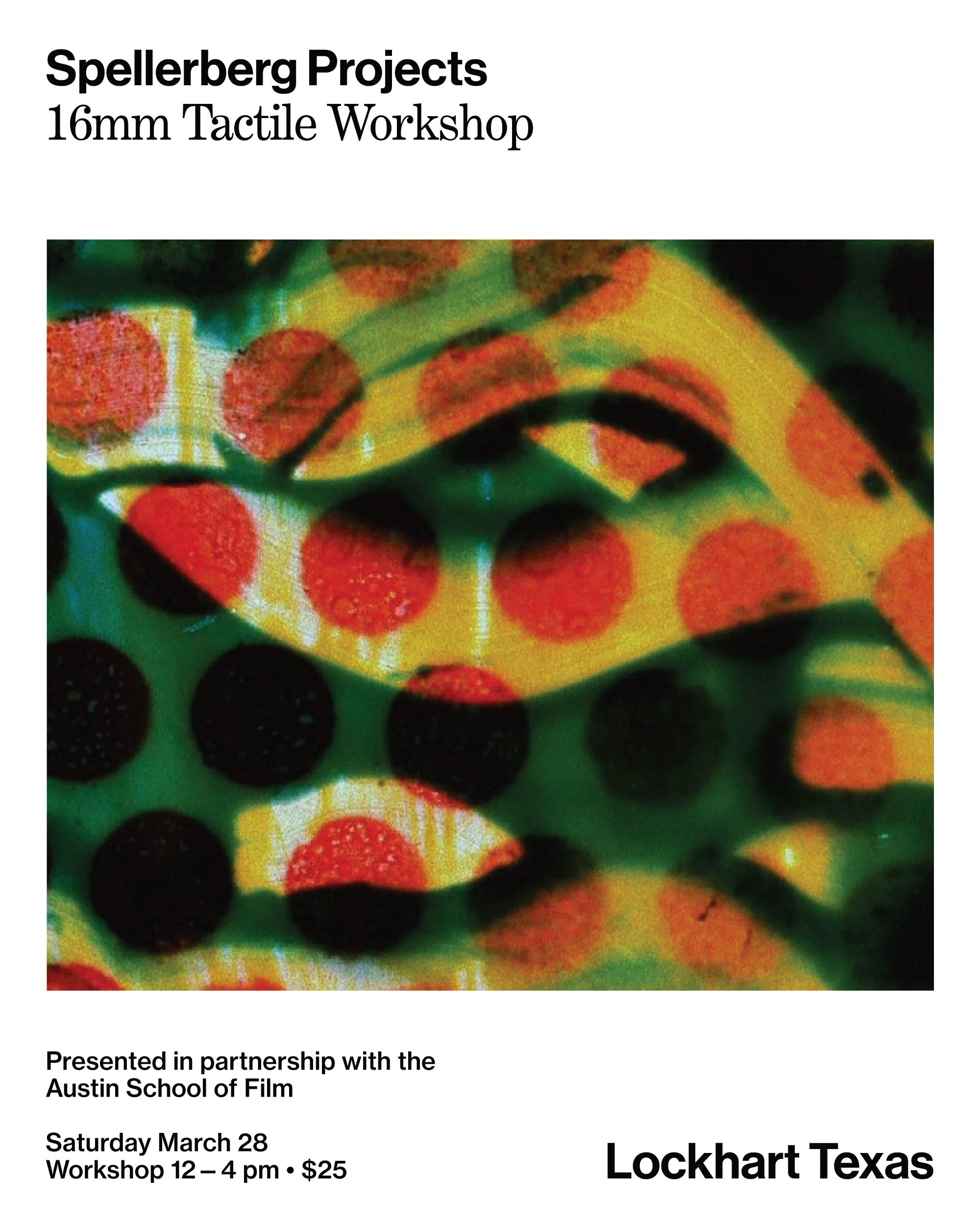 Lockhart, TX — Austin School of Film, in partnership with Spellerberg Projects, announces a beginner-friendly, hands-on workshop introducing participants to the vibrant world of direct animation on 16mm film. Taking place Saturday, March 28, 2026 from 12:00–4:00 PM at Spellerberg Projects in Lockhart, this immersive afternoon invites people of all backgrounds to explore one of the most tactile and expressive forms of analog cinema. No prior film experience is required.
