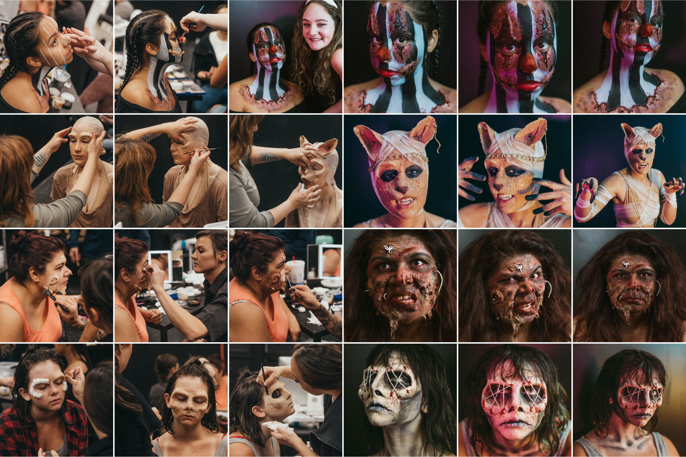 Today, we’re sharing some photos from our Intro to SFX workshop, where students used both DIY tricks and professional grade makeup to achieve their looks & learn through project-based class assignments & exercises.